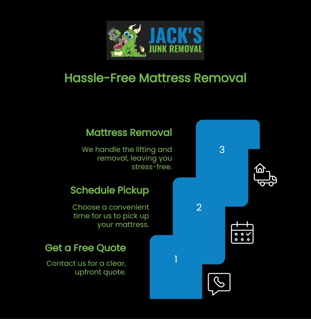 At Jack’s Junk Removal, we keep things simple just like they should be. You only pay for the space your mattress (or mattresses) takes up in our trailer. No hourly charges. No surprise add-ons. No junk fees, period.